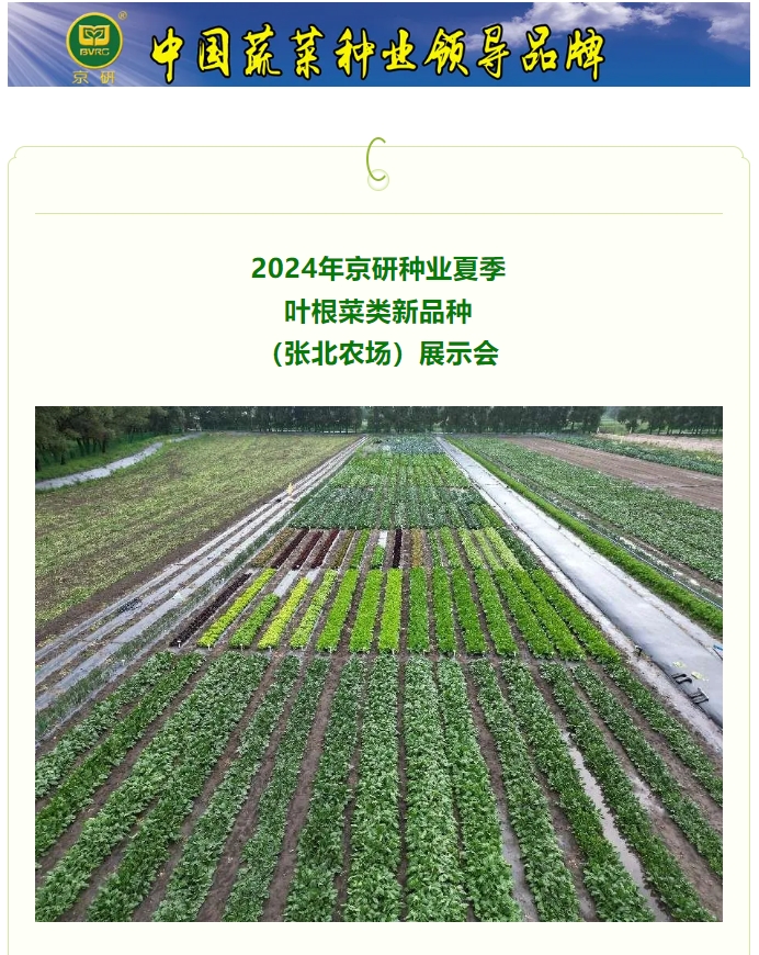 京研種業(yè)定于2024年7月25日(7月24日報到)在張北農(nóng)場召開葉根菜新品種展示會,