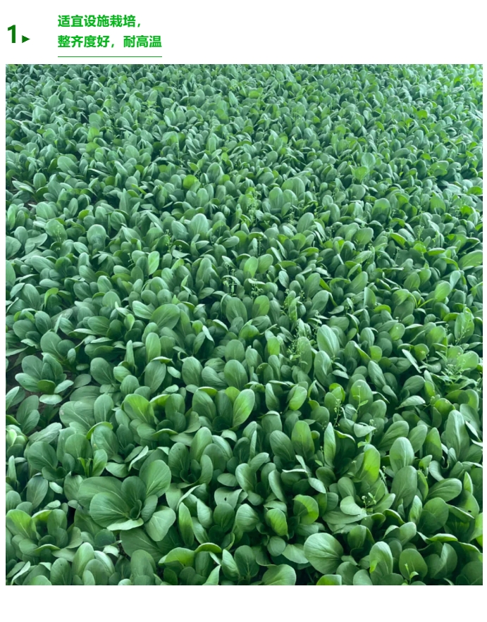設施栽培首先品種“國夏3號 ” 是京研種業育成的雜交一代青梗菜品種。植株長勢較