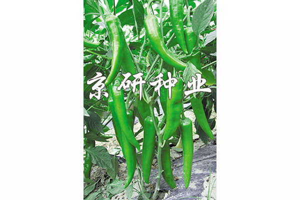中早熟、高產(chǎn)辣椒F1雜交種, 植株生長(zhǎng)健壯,果實(shí)長(zhǎng)寬羊角形,果形順直美觀,肉厚質(zhì)脆腔小;果型為23-25×3.5厘米,單果重80克左右;辣味適中,果色偏淡綠,紅果鮮艷,紅熟后不易變軟,耐貯運(yùn),持續(xù)座果能力強(qiáng),商品率高;高抗病毒病和青枯病、葉斑病;耐熱耐濕,越夏栽培結(jié)實(shí)率強(qiáng),綠、紅椒均可上市,適宜露地種植,畝產(chǎn)4000公斤左右。