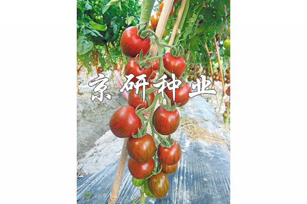 高端彩色早熟櫻桃類番茄雜交種,無限生長型,果實(shí)橢圓,暗紅紋底間綠色條紋,彩色獨(dú)特,色澤亮,萼片美觀,口味甜,風(fēng)味濃郁。每穗坐果數(shù)10-16個(gè),平均單果重25克,硬度高,既可單果采收也可成串采收,連續(xù)坐果能力強(qiáng),豐產(chǎn)穩(wěn)產(chǎn)。具有抗番茄黃化曲葉病毒病Ty1基因位點(diǎn)、抗根結(jié)線蟲病Mi基因位點(diǎn),適合春秋保護(hù)地種植。