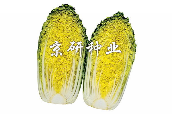 定植后50-55天收獲,株型小,較直立,適于密植,每畝可定植10000-12000株。外葉深綠色。葉球筒形,疊抱,球內(nèi)葉深黃色,球高21.9cm,球直徑10.2cm,球形指數(shù)2.1,單球重0.7kg。晚抽薹,抗病毒病、霜霉病和軟腐病,品質(zhì)佳。適宜低海拔平原地區(qū)春、秋季,高海拔地區(qū)夏季種植。